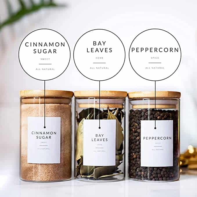 Create clean-looking spice jars with these Minimalist Spice Jar Labels that are perfect for the 4oz spice jars, and not to mention they are waterproof! They have over 135 pre-printed spice labels, plus extra blank ones for those uncommon spices you may have in your spice cabinet.